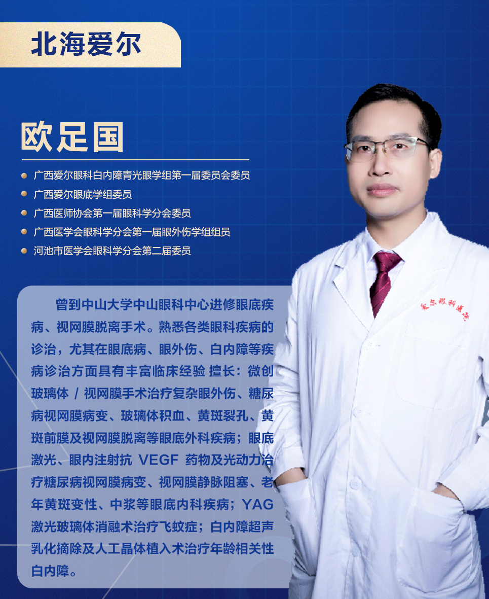 為滿(mǎn)足廣大群眾對(duì)眼健康的需求,北海愛(ài)爾眼科醫(yī)院特邀南寧愛(ài)爾眼底專(zhuān)科歐足國(guó)主任來(lái)院坐診,讓老百姓在家門(mén)口就能享受到省區(qū)專(zhuān)家診療服務(wù)。